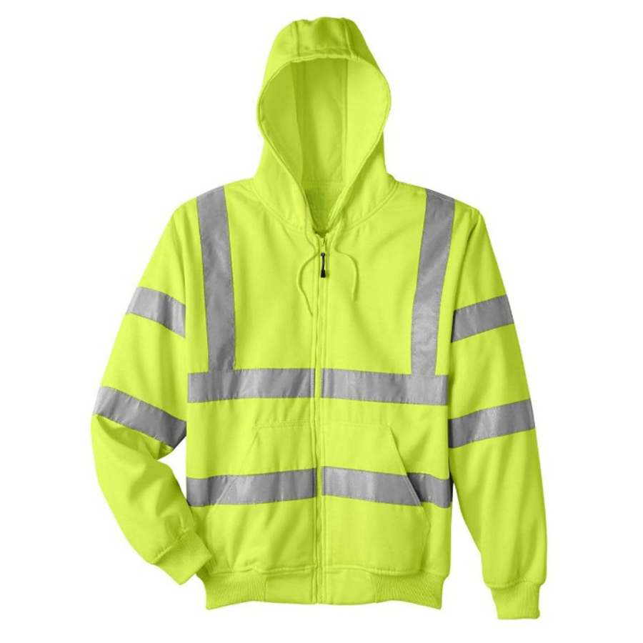 This high-visibility reflective safety sweatshirt made of 280G Softshell - featuring a 5CM thick reflective tape - makes this the ideal shirt suitable for workers in a variety of industries, including construction, roadwork, and transportation. The three layers of materials - water-resistant, breathable, and insulating - ensures ultra-comfort, safety, and durability in any environment. This sweatshirt meets the ANSI/ISEA 107-2015 Class 3 Standards, prioritizing your safety and ensuring you stay visible and protected in low-light conditions. Features a chest pocket, a waist pocket, and zipper closure! Screen-printed imprints are available for your own designs.Standard pricing is for BLANK product. See Decoration Details for imprint cost.;