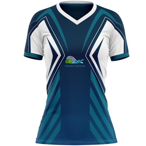 Design your own custom full dye sublimated tennis jersey with a logo, name and numbers! Made of polyester and spandex interlock with a fabric weight of 180 gsm, these men's jerseys are durable, anti-microbial and breathable with quick-dry technology. Each top features a V-neck with short sleeves and a classic fit.Material: 92% polyester and 8% spandex, 2-way stretch spandex interlock. Fabric Weight: 180 GSM;